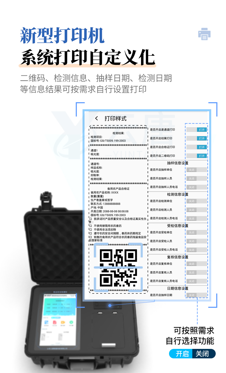 2、儀器功能包括:分光光度模塊、膠體金檢測模塊、新型農(nóng)殘檢測模塊、數(shù)字化管理模塊、無線通訊模塊等,可以滿足同一軟件下實(shí)現(xiàn)所有檢測項(xiàng)目的檢測,并在同一窗口展示檢測結(jié)果。