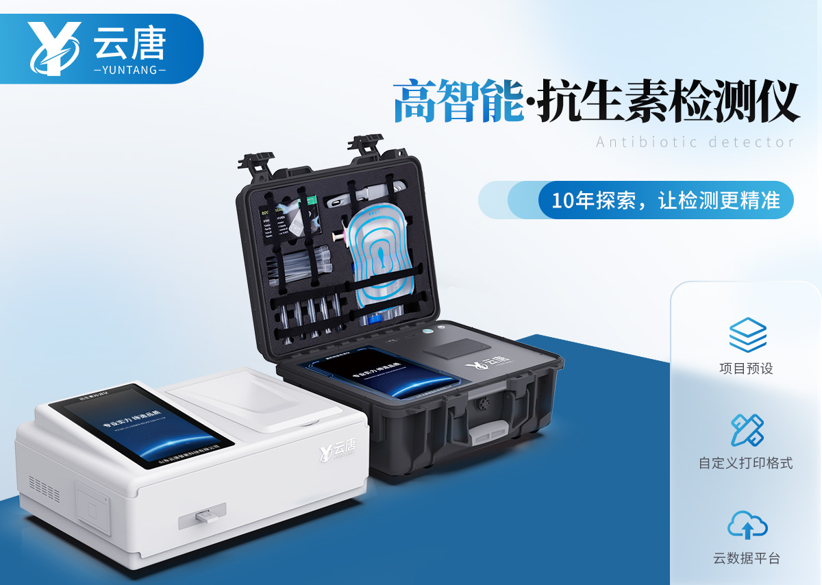 山東云唐智能科技有限公司生產(chǎn)的抗生素殘留檢測(cè)儀可現(xiàn)場(chǎng)快速檢測(cè)抗生素類殘留、獸藥殘留、激素類殘留、毒素類殘留,化學(xué)類殘留等多種項(xiàng)目,如可快速檢測(cè)四環(huán)素類、硝基呋喃類、磺胺類、沙星類、喹諾酮類、氯霉素、慶大霉素、鏈霉素、喹乙醇代謝物、硫酸鏈霉素、羧芐青霉素、噻孢菌素鈉、阿莫西林、氨芐西林、紅霉素、潮霉素B、安普霉紊、桿菌肽等抗生素快速檢測(cè);還可檢測(cè)激素類:鹽酸克倫特羅、沙丁胺醇、萊克多巴胺、己烯雌酚等,水產(chǎn)獸藥:呋喃妥因代謝、呋喃西林代謝、呋喃它酮代謝、呋喃唑酮代謝、孔雀石綠等,毒素類:黃曲酶毒素B1、嘔吐毒素、玉米赤霉烯酮、赭曲霉毒素A等,化學(xué)類藥物:氨丙琳、甲基吡啶磷、阿滅丁、雙甲脒、阿散酸、阿維菌素、氮哌酮、芐青霉家、頭孢噻呋、克拉維酸、氯羥吡啶等項(xiàng)目